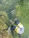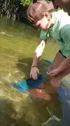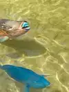 Close and personal with the colorful fish at the beach end.