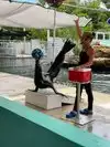 sealion, and shark feeding. It was really hot and humid around 85 degrees while walking the trail to each show. The dolphin show was the best, like the old "Sea World