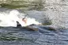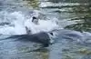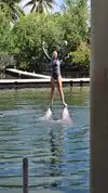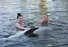 After the dolphin show was over, then came the various activities in which members of the public were allowed to swim or interact with different types of animals, directly. For us, it was swim with the dolphins, and it was a lifetime memory. To be honest, it was VERY brief. Just one or two minutes in the lagoon with the dolphins, per person. Primarily focused on capturing a dorsal fin ride, carried by two of the well-trained dolphins. Afterwards, one of the dolphins swam up to you--in a shallow area--and you were able to hold the dolphin, pet it, and get your picture taken with the dolphin. Too short? Absolutely. Completely memorable? Absolutely.