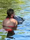 Lifelong dream of mine to interact with dolphins. This was the perfect place! We chose to wade with dolphins, the whole experience was over 30 mins, not rushed, trainer Cristy was super, we got to pet, rub, kiss, play with and hold 2 dolphins. They let us take our own pics and videos with not charge or hassle unlike most places. The fee included the price of admission to the park with was fun. The habitat was much more natural with sand and beautiful greenery. Two in our party got to be observers for only $35 (which got them into the park as well). The shows were great, liked the short bottomless boat ride where dolphins come swim in the middle and do a few tricks. If you have ever wanted to interact with dolphins this is perfect, more natural, more relaxed, less commercialized than I have ever seen.