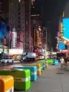 Neighborhood par excellence of nightlife day and night. Even in the evening it seems day. Lights everywhere , music , big traffic especially on the weekend . You easily spend a lot of money if you are not careful. Prices are quite high even a single hotdog costs $10. From here they can walk to other points of interest. At time Square you will find the M&M and Lego store waooo fantastic!!! Beware of people dressed up as Disney characters because they approach tourists with a smile for the photo and then when the photo is taken they want $5.