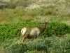Not widely advertised, but Tomales Point Trail is a fabulous day ride for horses. There is room to part a trailer or two at Pierce Point Road just outside of the old dairy. The trail out to Tomales Point is an easy trip for even a young horse, with the only real obstacle being the Tule Elk which can be found rather close to the trail. Note that there are no hitching racks at the point. We rode to the point and then rode back to the one and only grove of trees about a mile back from the point to eat our lunch. There are some places to tie up there just off the trail for well-behaved horses. Bathroom are down at the beach parking lot further along Pierce Point Road, so plan ahead for a stop there before you unload if you need a rest stop before tacking up. I'd recommend having water at your trailer for your horses as there is no water along the trail without disturbing the elk.