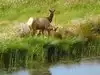 Wildlife is up close and personal. Hawks use the wind to glide in place looking for something to eat. Crows and many smaller birds are around along with the normal shore birds and grass land birds at water level. The Elk do not shy away, and in our case, neither did a Coyote hunting for her meal.