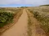 You start at Pierce point ranch north of San Francisco (about 1.5 hours from the city). All the way to the tip of Tomales point is about 4.7 miles (9.5 miles round trip). You have the ocean on one side, and the bay on the other, elk grazing all along, and, at this time of year, wonderful wildflowers everywhere. It is a favorite hike of mine, and I make it a point to do it once a year .