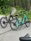 Family biked the trail along coast and in forest. Some rode bikes and some e-bikes. Crowded on weekend. We even saw a moose.