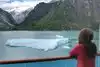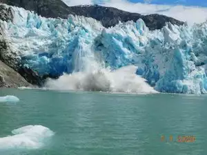 It was so dramatic to watch this glacier calving from our cruise, we were on the Captain Cook. When the ice gives way it sounds like a gun shot, and then the ice falls into the water. Such a sight to see, try to get here if you can. It is unforgettable!