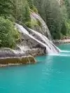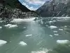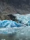We weren't sure we get in since the week before ice sheets fell from the Sawyer Glaciers and blocked travel for many vessels. We got lucky, and it was breathtaking. The water is a stunning aqua marine color and the ice pieces floating are blue.
