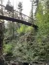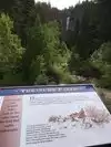 The falls can be seen from the highway. At the parking lot for the falls a short trail, leads you up some switch backs so you can get closer to the falls and a bridge. Up a bit further on the trail is a viewing platform covered in mist from the spray of the falls.