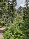 If you are in the area of Wolf Creek Pass in South Central Colorado...look for a pull out for parking about six miles below Wolf Creek Pass and Ski Resort. This pull out has two trail heads...both easy to do...that are good hikes for most family members. The waterfall is especially nice, and is about a mile long hike. The picture near the review I am typing is a good reflection of the destination of the hike. Although you can see it from Hwy. 160, it is worth the hike to feel the cool spray of the water hitting the rocks at the bottom of the falls. It is a very pretty hike, and near Bruce Spruce Ranch campground and the town of Pagosa Springs, Colorado