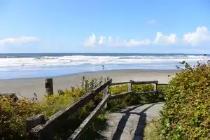 Worth a quick stop to walk out on the beach to photo the tree root cave. It looks like it may not be there much longer with all the ground erosion. Parking is available for day use next to the campground. The trail to the tree is easy access but it does involve stairs.