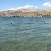 Quite beach with lots to see.