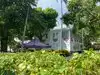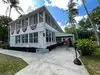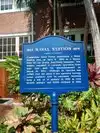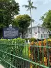 The museum iron gate surrounds well a manicured lawn which boasts the Key West Home draped by flags which includes history markers to enlighten you. The vehicle sits outside under a canopy garage.