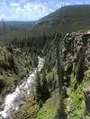 The gentle incline up the trail leads to multiple falls. One of them can be accessed for the brave to sun themselves and jump off for a frigid swim. Beautiful wildflower meadows at the higher altitudes.