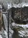 This is a popular place. Even on a wet, snowy October day, the parking lot was full. But the walk to the falls was less than a 100 feet, they were very pretty, and the viewing platform provided a perfect view.