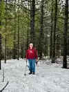 Other hikers told us that the hike to Double Falls was snowy but manageable if you stay in the center of the trail. The hard center of the snowy trail is only 8 - 12" in most places and incredibly slippery, so we ended up sinking into the snow up to our knees many times. Finally made it after a very slow and wet journey to the beautiful Double Falls - wouldn't do it again. Very dangerous for sprained knees, ankles, etc. Took almost 4 hours to do the total 7+ miles.