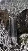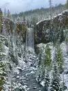 Tumalo Falls is closed for the winter, but you can still walk into the park to hike or see the waterfalls. However, be advised, the waterfalls are at least 2.5 miles from the gated entrance and the viewpoint is up the hill from that point. The restrooms were open and clean. The park is not crowded, but it is quite a hike.