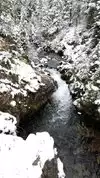 Beautiful hike and easy enough to do even with older adults or children. It's about a 2.5 mile hike in on the mostly flat road or you can do the 3.5 river trail when the road is closed for winter. Dec.19 seems to be about the time they close the road to car traffic but parking along the road is free and even when there is snow, the road hike is doable with snowshoes. (It's so well traveled that good winter boots without snowshoes can get you into the falls without trouble). The upper fall view is a bit tricky because of ice on the trail so clamp ons for hiking shoes would be a good option.