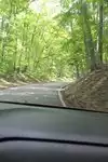 It meanders through the thick woods of the area and provides a great dose of Forest Bathing with your car rather than with your feet.