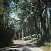 Narrow beautiful road with trees forming a lovely border. Take your time driving this road that is preferable to being on a freeway or a State Route. There is no place to park and walk around other than at the towns you pass.