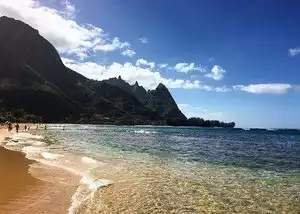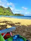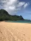 This is a great beach with amazing views of the Napali Coastline. Surf is fairly calm in the summer. Snorkeling is awesome and we saw turtles just off the shore. Parking is limited but beach doesn't get too crowded like CA beaches. Definitely one of the best areas in Kauai.