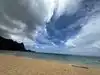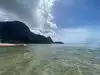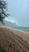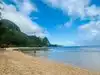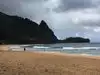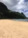 We came in October and it was rainy and overcast. There were rip warning signs on the beach but still quite a few snorkelers out there. There's no vendors on the beach though so you'll have to bring your own gear. It's nice seeing the mountains in the background with clouds covering the tips, but otherwise the beach is nothing special. The sand is yellow and coarse and the water isn't picture perfect pristine. And the drive here (from Princeville) isn't amazing. It's narrow, windy and just goes through forestry, so you don't get a nice coastal drive that I would have expected.