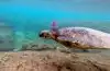 In the fall, September, the beach was closed for one day because of wind/currents. Anyway, we lucked out, parked on a side street and snorkled. We were about to leave when somebody mentioned the turtle. So we put on the snorkle gear and went out to swim next to a giant sea turtle in about 3 foot deep water. What a treat, watching Yurtle the turtle eating, floating and looking at us. Woo hoo!