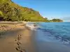 This is an unspoiled beach; hard to find; a hidden gem!. Beautiful, crescent shaped sandy beach fringes a stunning mountain backdrop. There is incredible snorkeling when the ocean conditions allow.