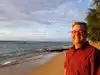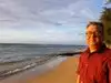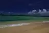 Classic Kauai beach---deep blue on one side, deep green on the land side.