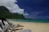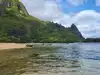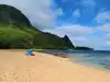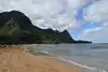 Absolutely beautiful, so natural and unspoilt, soft golden sand with a gorgeous backdrop of the start of the Napali coast.