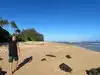 This is a long, beautiful beach with good snorkeling and stunning views of the NaPali cliffs. There are signs warning people that the currents here are strong, so use caution. Monk seals were sleeping on the sand one day when we were here.