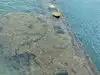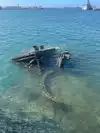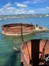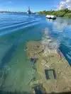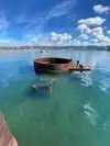When one Google searches the memorial, one sees dramatic photos from overhead that show the entire top of the ship visible just below the water. However, when we were on the memorial, the water was not transparent and one could only see the few parts that were above the surface of the water. Perhaps there is better clarity on days with less wind; but I had expected more of the ship would be visible.