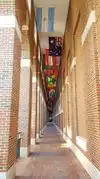 Campus is absolutely beautiful. Instructional area of campus filled with historic and newer red brick buildings. Stadium as open for practice, watched and took pictures. Student union and bookstore were open and filled with students.