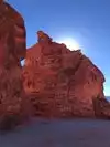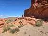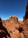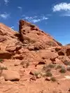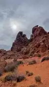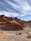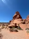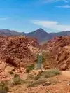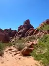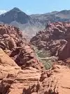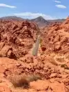 The hidden gem of the area and much less crowded that Red Rocks and a lot prettier. Mainly 100 to 200 tall rock outcroppings of red and some other rocks. The small park is on one side of a valley on a road between I 15 and Lake Mead. Only one 11 mile dead end road into the park with several short hikes to viewing points or about a mile loop trails. Nothing very strenuous but are some steep sections. There is a small welcome center with water, working bathrooms and snacks, no real food. Loads of outhouses at the parking pullouts.