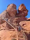 You will then cross the road and continue hiking through beautiful landscape of sandstone and rock. This will take you back to the parking lot. We started the hike close to 1 pm and it did get quite hot so make sure you take water and take time to rest if you need to. We got pretty tired towards the end. FYI my husband and I are both in our early 60s. Also, make sure you follow the metal poles marked with yellow paint to guide you back to the parking lot. Thank goodness someone who had just hiked the Seven Wonders Loop told us this or otherwise we would have wandered off trail and might still be there! We spent several hours at this park and did not get to see everything, so we are looking forward to going back. Totally worth the visit!