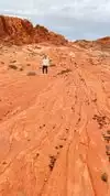 We rented a car overnight from Avis at the Mirage hotel and went early to the park. We got there about 7:30-8am. A great time to get there I think. Was a Saturday. So beautiful! I was drawn to some of the photos I had seen online and prefer hiking to playing slots or walking the strip in Vegas and so glad we got to see this park! For the nice view of the road with red rocks each side - drive first down the Mouse Trap road to the Rainbow Vista parking lot. Then walk backwards along the road you just drove and look that direction. You will see the view and then you will see some rock areas on each side of the road you can climb up to get some great views! Then get back in your car and drive to the lot near the Fire Wave trail. Walk across the road from the main parking lot and take the trail to the Fire wave. Once you see the swirls of rocks head close to the edge and then also the other direction for different views and photo spots. You can then continue along and loop over the road and back to the parking lot on the other side. There is a small a lot canyon area. We did not go to the Whote Domes trail but I think that you get great views and another slot canyon there. You can then drive to other spots including elephant rock