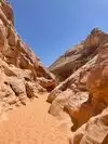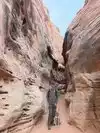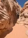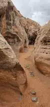People with knee or hip issues should know that the trails are soft sand and pose some difficulty. We did see many people turning back on White Dome. There is a fairly steep descent which we chose not to risk. Mouse Tank is more of a flat trail and with care is manageable. Climbing the last part of the trail is definitely worth it for the view.