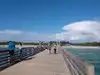 A big pier with people walking around & fishing. The view is beautiful... the breeze in your hair, the waves & kids playing on beach. Bait shop if needed. Places to clean your fish. Fun to watch the serious fishermen. One caught a lemon shark. Snarky restaurant & bar is on the beach...
