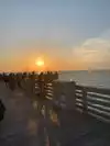 Have lived in the area all my life and experienced the fishing pier for the first time over Easter weekend 2018. You have to fight thru the crowds of people waiting to eat at Sharky's (restaurant at the base of the pier). but once you get on the pier itself the views are great. It is a well made pier with a ton of people fishing from the sides. You need to pay attention so you don't step on an occasional fish head, watch for flying fishing line/hooks and don't lean on the railing (fish gut residue & bird poop). It is not uncommon to see dolphin coming out of the water in pairs going under and around the end of the pier. Stayed for almost an hour watching about 4 dolphins swim around...worth the trip. There are restrooms near the base of the pier for public use since there is a beach here as well. You may have to walk a little ways for parking during snowbird season. Didn't watch the sunset as we went early afternoon but would be a perfect spot to watch from.