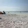 Beautiful beach kept the kids busy the whole time with walking at the pier to see the dolphins to hunting for shark teeth 15 total they found and also being able to go get frozen drinks for them and us...another positive was plenty of parking even arriving at noon