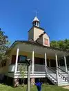 Living History Museum with original houses from the 1700 and 1800's. Air conditioned and period dressed people performing quilting, wood carving, fiddling, etc in each house. Lovely landscaping, Chapel, Blacksmith forge and pull ferry crossing.