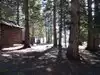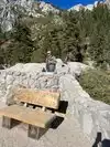 There is a bookstore nearby that sells snacks and drinks. Lots of picnic tables to get out of the sun. Clean pit toilets on property.