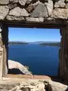 My husband and I hiked down the 1 mile (all downhill) road to the castle. Unfortunately it was closed for the season, but it was still worth the walk, Very cool to see the structure is still looking good, courtyard was nice, nice view of the lake and the island. Very cool to walk on the beach as well. But the hike up isn't for the weak of heart, it's 1 mile uphill the entire way. Bring water. Restrooms are at the bottom by the castle though.