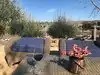 1st time wine tasting and our 2nd stop of the day. Very cool vibe and idea on the tasting room, it is all outside with lots of seating, umbrellas and colors. No actual bathrooms but they have a few Porta potty 's. They offer free olive oil and sliced bread with tasting. The Grenache and Cabernet where very good. We found it to be a bit on the higher price range. Bottles are $$, $15 for a glass of wine or $15 for 5 tasters. Other places offer a coupon/discount or 2 for 1 tasting and I didn't find any here. We went of a Fri. Overall the ladies there are very nice, good view, cool and different vibe... however once was enough. It is totally worth a stop though to check it out.