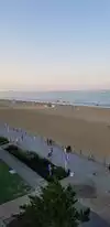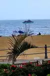 Impressive beach in both scope and cleanliness. Every morning half a dozen tractors are at work leveling the sand and removing any debris from the preceding day. Almost every weekend there is one or more events taking place. The beach is some seven miles long with a cement boardwalk of three miles running alongside.