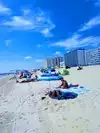 My first time visiting a beach in the summer and I was surprised at how uncrowded it was. The beach was clean and very quiet. A little more surf than I like to wade in but that's Mother Nature. Hands off to the vendors providing lounge chairs and umbrellas. Greatly appreciated.
