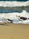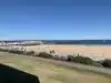 A beautiful, sandy beach with easy rolling waves in places. The concrete boardwalk is very wide, with plenty of parking available within a block.