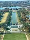 Just like in the movies. Beautiful reflecting pond. Monument is on a hill you can see White House, capitol, Jefferson monument and Monticello monument (I think).