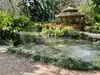 Walking through the gardens is a tranquil, peaceful experience. There is a winding water course with babbling fountains. Paths lead through a formal rose garden, across bridges and through a gazebo. We observed many butterflies and small lizards.