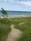 We stopped here on our travels this week. The water was cool, but it was nice to walk on the beach and dip out toes into Lake Michigan. The Lighthouse is so cute, we didn't walk out to it but enjoyed the view. We tried to stop on our way back through, but the weather prevented it. I'm sure it is much busier in the prime season, but I would go back. Two sand volleyball courts and restaurants right there. Also a zoo was at the park which we did not have time to visit.