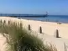 We love this beach on Lake Michigan. The water is beautiful. The beach is clean and parking is only 7$. It was easy to get to and watching the boats come in and out of the marina from the pier was fun. I have 2 young children and they loved it too. The only suggestion I have is to spruce up the bath house and get more outside showers.
